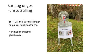 En stor takk til alle barn og unge som leverte inn kunst til barne- og ungdomsutstillingen i Pensjonathagen. Vi fikk inn 34 tegninger, noen med tekst, ett maleri og en ansiktsmaske. Elisabeth Kleven og Tone E. Løw tok imot bidragene og delte ut en påskjønnelse til hver enkelt. En stor takk til Europris som støttet påskjønnelsen til barn og unge.