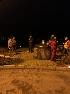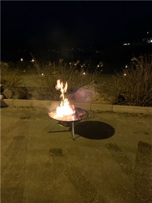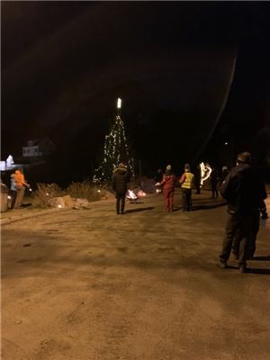 Med bålpanne og fakler på denne vindstille 1. søndagen i advent ble det en stemningsfull julegrantenning. Den lyssatte Pensjonathagen forsterket førjulsstemningen på arrangementet.