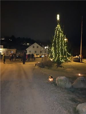 Hvitsten Menighetskomite hadde laget en hyggelig og vakker ramme rundt tenningen av juletreet.