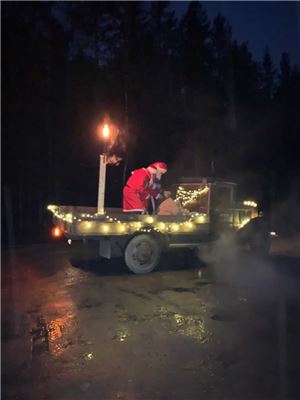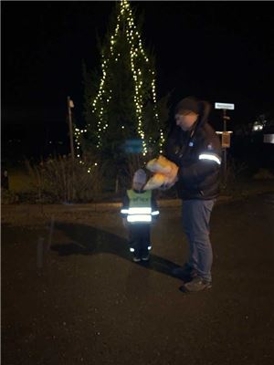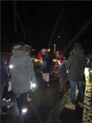 Nissebilen stopper langs veiene der det er barn. Ta gjerne med lys eller fakler så dere er lette å se.