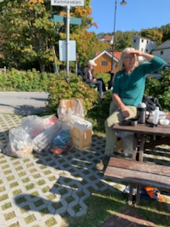 Torill Hindmarch som er klar med utdeling av tomme sekker, plastsekker og hansker.